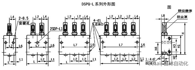 SSPQ-L系列雙向出油分配器正面和底部均有給油口,分配器活塞正反向動作分別從正面和底部的給油口排出潤滑脂。相對于SDPQ 型分配器給油口成倍增加,正面右位給油口下預制一,二口合并為一口的螺塞,易改為奇數(shù)出油,使用系統(tǒng)配管簡單。SSPQ-L2、3、4三種系列的分配器,同樣給油口數(shù)的外形安裝尺寸相同,易于型號變更替換方便。