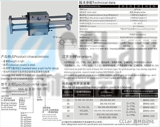 MGCLF20-250,MGCLF20-300,MGCLF20-350,MGCLF20-400,MGCLF25-75,MGCLF25-100,小型帶導(dǎo)桿氣缸