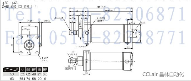 DAB-32*75,DAB-32*100,DAB-32*125,DAB-32*150,DAB-32*200,DAB-40*25,苗條形端蓋氣缸