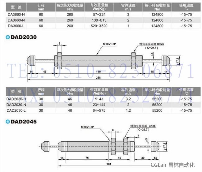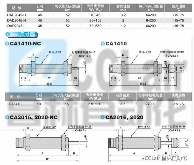DA2525,DA2540,DA2580,DA3660,DAD2030,DAD2045,CA1410,CA2016,CA2020,CA2016,CA2020,CA2525,CA2540,CA3650,油壓緩沖器,新恭油壓緩沖器,價(jià)格