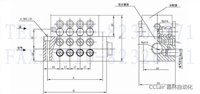 QHQ-J型油氣分配混合器,主要由中碳合金鋼制造的單線遞進(jìn)式油分配器與由鋁合金材料制造的油氣混合器組合而成,設(shè)有一個(gè)進(jìn)氣口,一個(gè)進(jìn)油口,4~12個(gè)油氣出口。主要適用于單線二分式油氣潤滑系統(tǒng)或雙線-遞進(jìn)式油氣潤滑系統(tǒng)中。