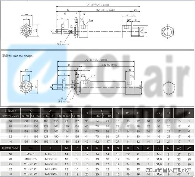 MSAL-CA25-150,MSAL-CA25-175,MSAL-CA25-200,MSAL-CA25-300,鋁合金迷你型氣缸
