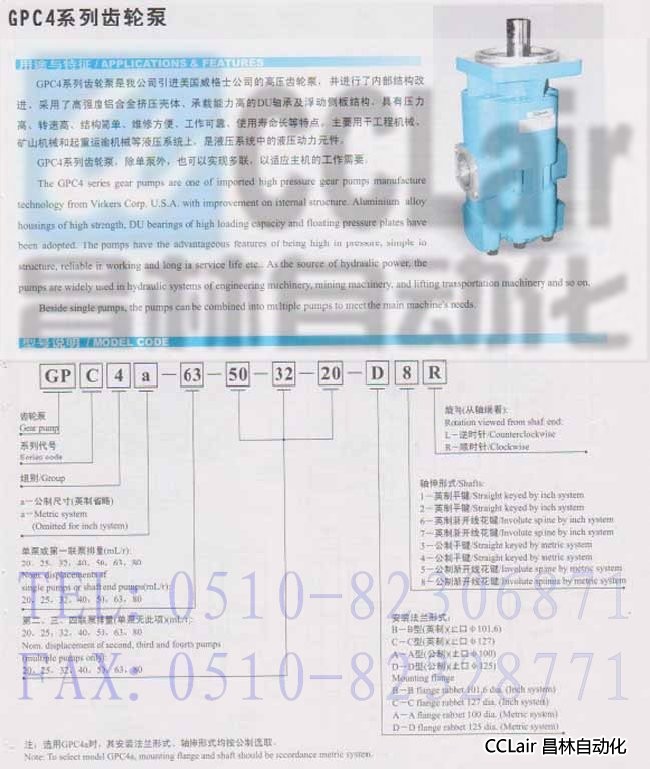 GPC4-20, GPC4-25, GPC4-32, GPC4-40, GPC4-50, GPC4-50,齒輪泵