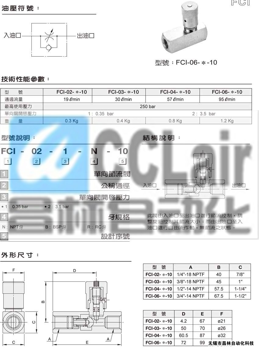 FCI-04-1-N-10,FCI-04-1-B-10,FCI-04-1-R-10,FCI-04-2-N-10,FCI-04-2-B-10,單向節(jié)流閥,生產(chǎn)廠家,價格