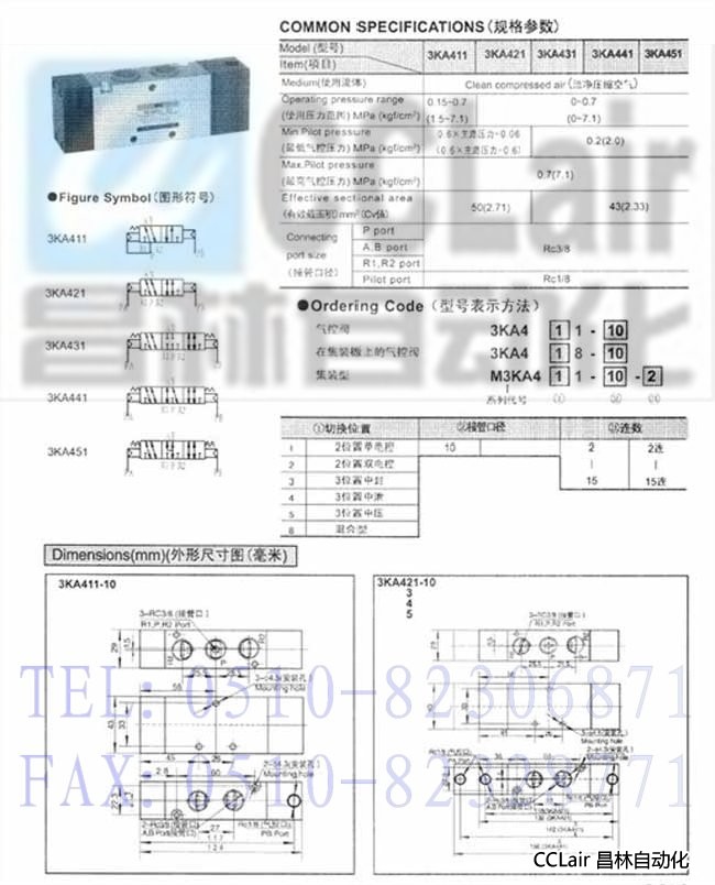 3KA411-10,3KA421-10,3KA431-10,3KA441-10,五通氣控閥,