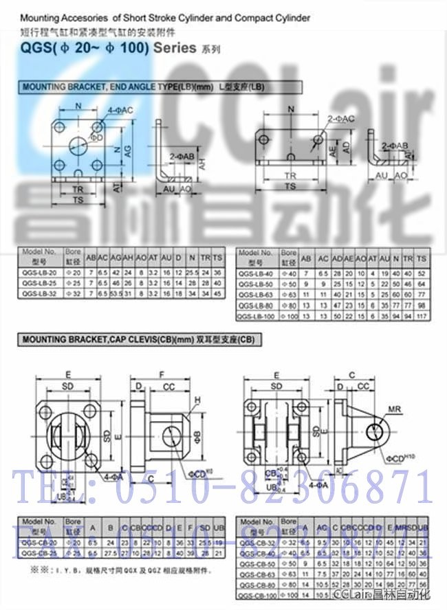 QGS-LB-20,QGS-LB-25,QGS-LB-32,QGS-LB-40,QGS-CB-50,QGS-CB-63,QGS-CB-80,QGS-CB-100,氣缸附件