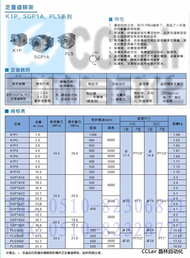 K1P1,K1P2,K1P3,K1P4,K1P6,PLS3050,PLS3060,定量齒輪泵