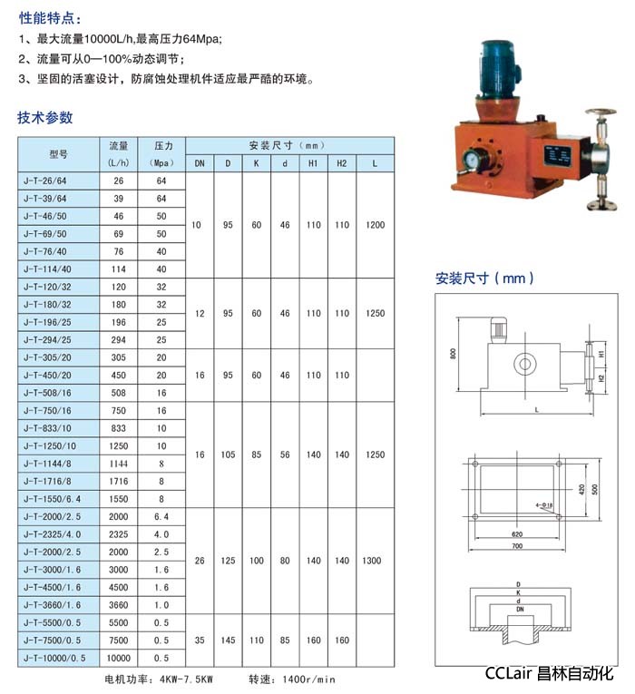 J-T-305/20,J-T-450/20,J-T-508/16,J-T-750/16,J-T-833/10,柱塞計(jì)量泵
