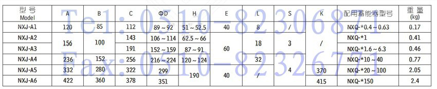 NXJ-A3,NXJ-A4,NXJ-A5,NXJ-A6,NXJ-B1,NXJ-B2,NXJ-B3,蓄能器支座及緊固箍,