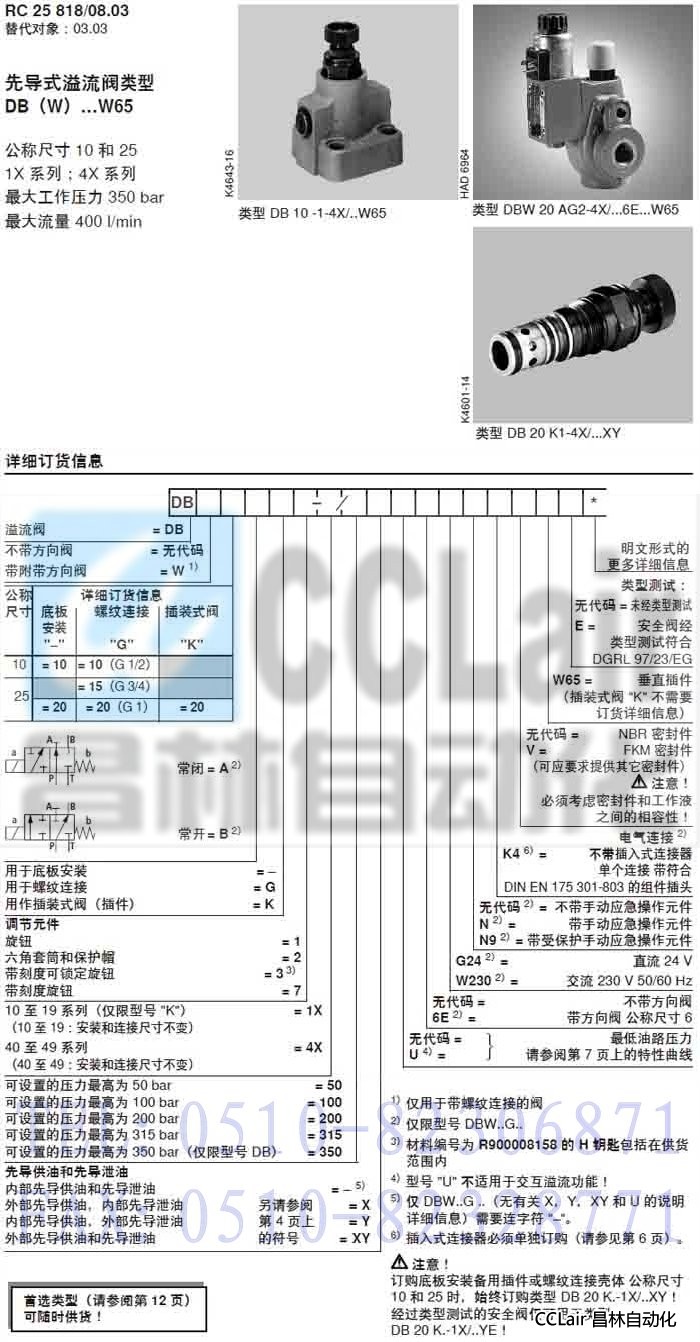 DB20G1-4X/50VW65,DB20G1-4X/50UW65,DB20G1-4X/50YW65,先導(dǎo)式溢流閥,力士樂(lè)REXROTH,德國(guó)力士樂(lè)