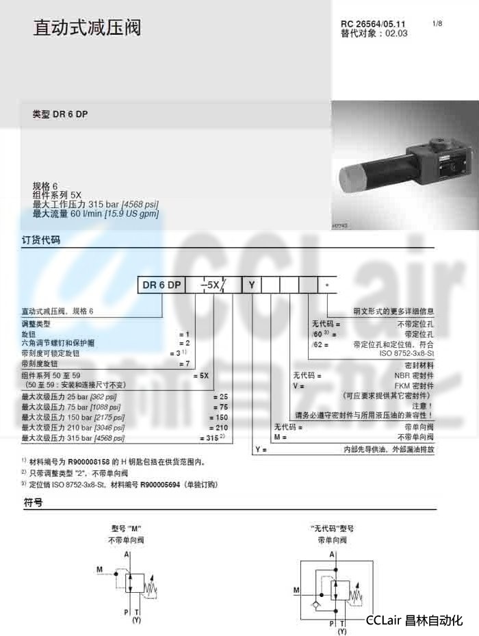 DR6DP1-5X/25YM,DR6DP1-5X/25YMV,DR6DP1-5X/25Y,直動式減壓閥,力士樂REXROTH,德國力士樂