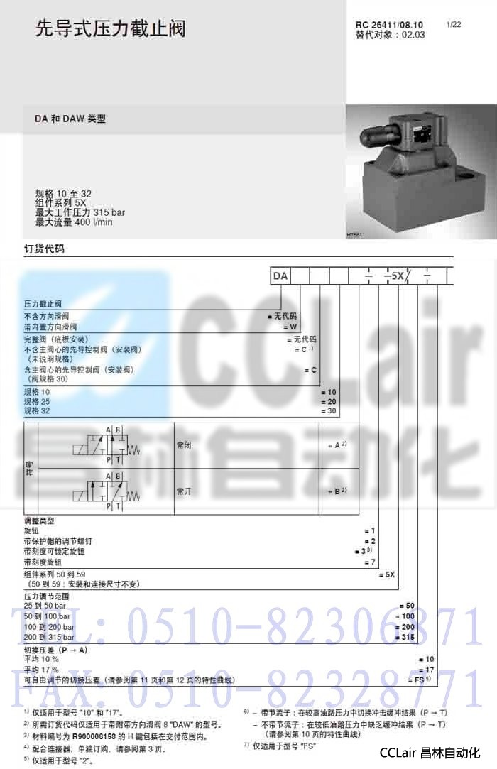DAW10A2-5X/315-10-6EG24N9K4,DAW10A2-5X/315-10Y6EG24N9K4 ,先導(dǎo)式壓力截止閥,力士樂REXROTH,德國(guó)力士樂