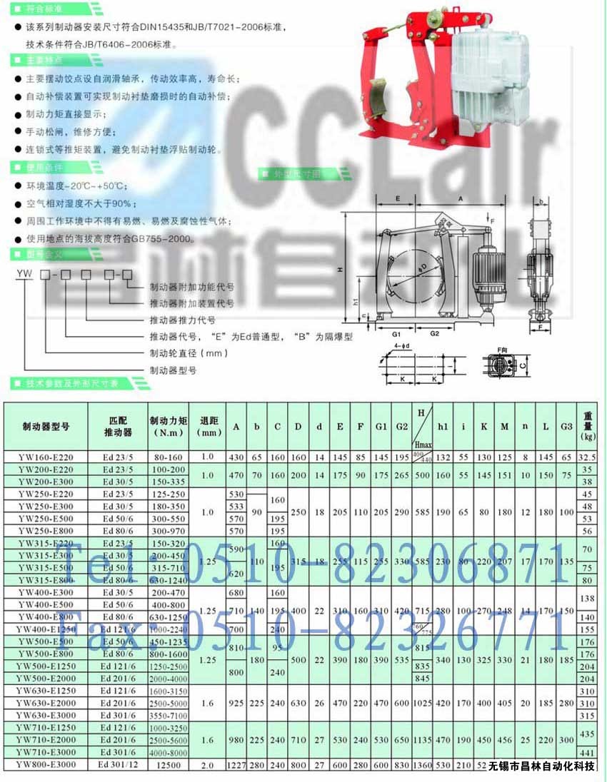 YW315-E220,YW315-E300,YW315-E500,YW315-E800液壓制動器