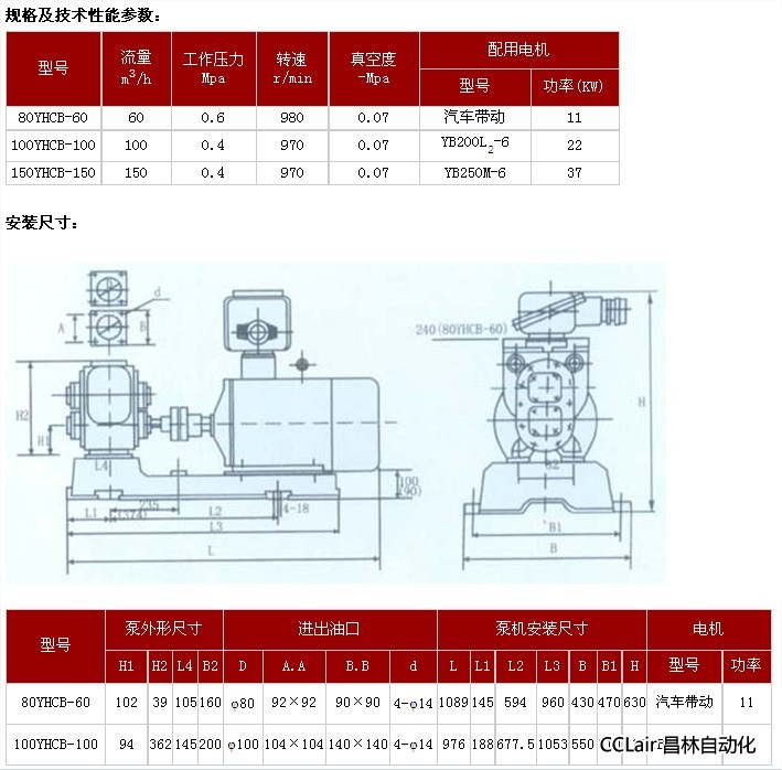 80YHCB-60,100YHCB-100,150YHCB-150,系統(tǒng)圓弧齒輪油泵