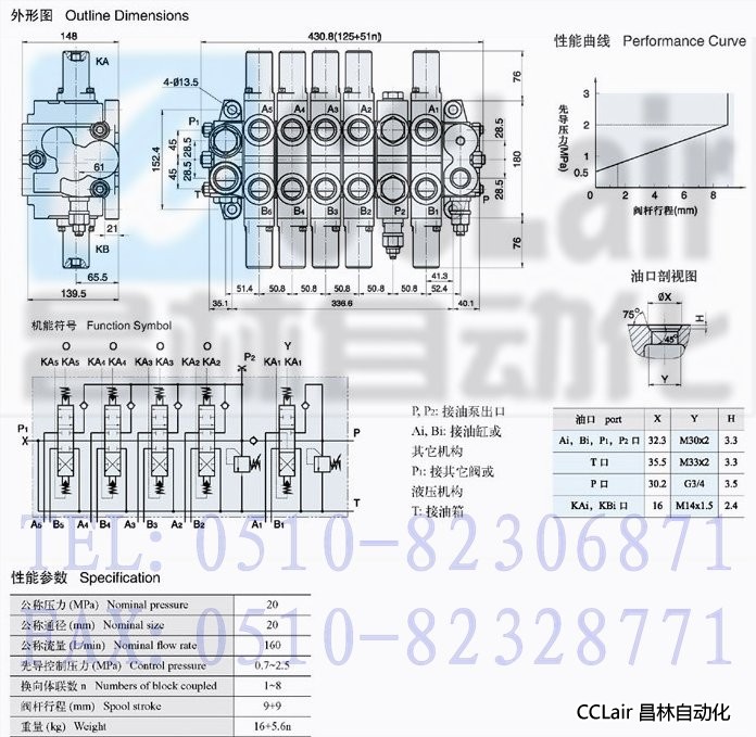 XYDL*-F20L 系列多路閥是在DL*-F20L系列多路閥的基礎(chǔ)上開發(fā)的,先導(dǎo)閥控制液動換向。XYDL1-F20L系列多路閥的回油體帶