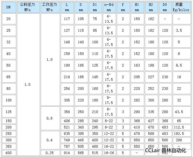 壓力等級:PN(MPa) 0.6 1.0 1.6
