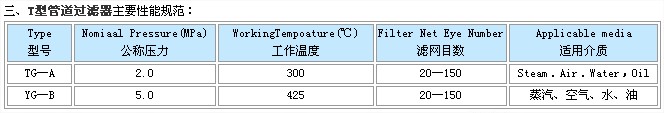 產(chǎn)品特點(diǎn):TG型過濾器適用于蒸汽、空氣、煤油、水等配管上排除銹渣及異物保護(hù)閥門及設(shè)備。T型管道過濾器,管道過濾器,過濾器。