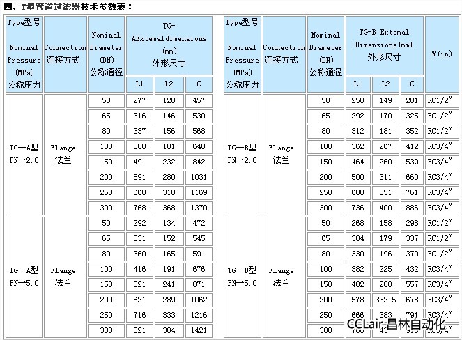 TG-A,TG-B,管道過濾器