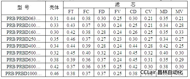 、額定流量下的清潔濾芯壓降