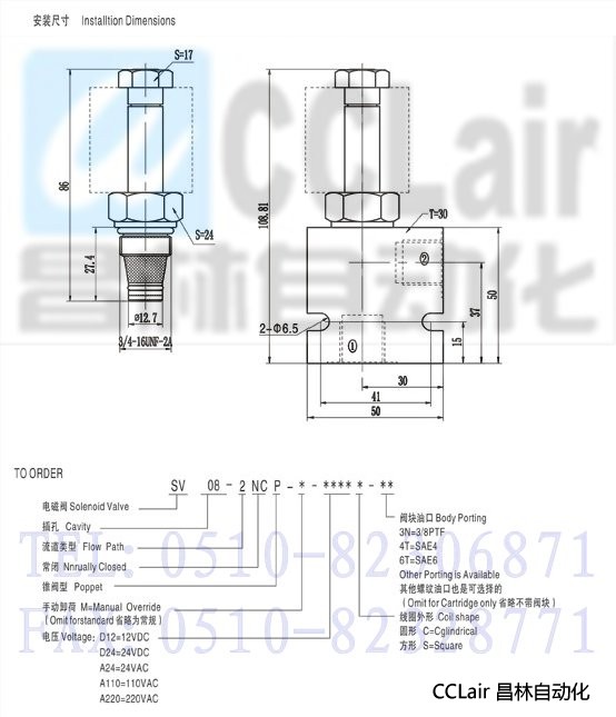 SV-08-2NCP,電磁換向
