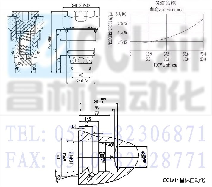 此閥使用時(shí),允許液流以很低的壓力降從①口 到② 口,同時(shí)阻止液流從② 口到① 口.