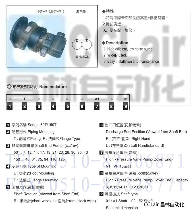50T-T-7-L,50T-T-12-L,50T-T-14-L,50T-T-17-L,50T-T-19-L,50T-T-21-L,定量高低壓組合泵
