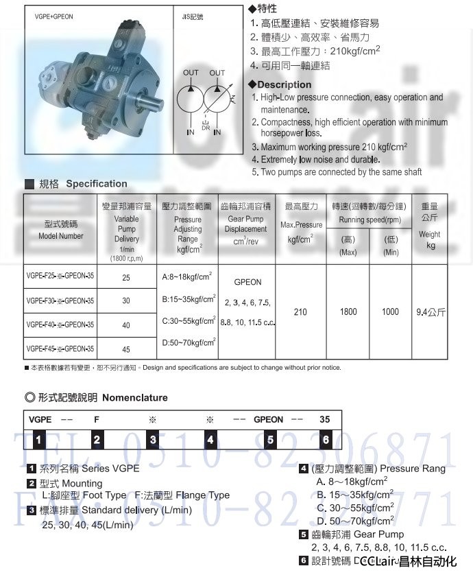 VGPE-L25-A-GPEON-35,VGPE-L25-B-GPEON-35,葉片泵+齒輪泵