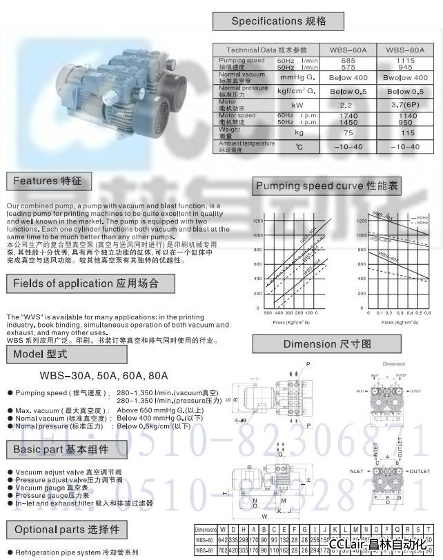 WBS-60A,WBS-80A,復合型真空泵
