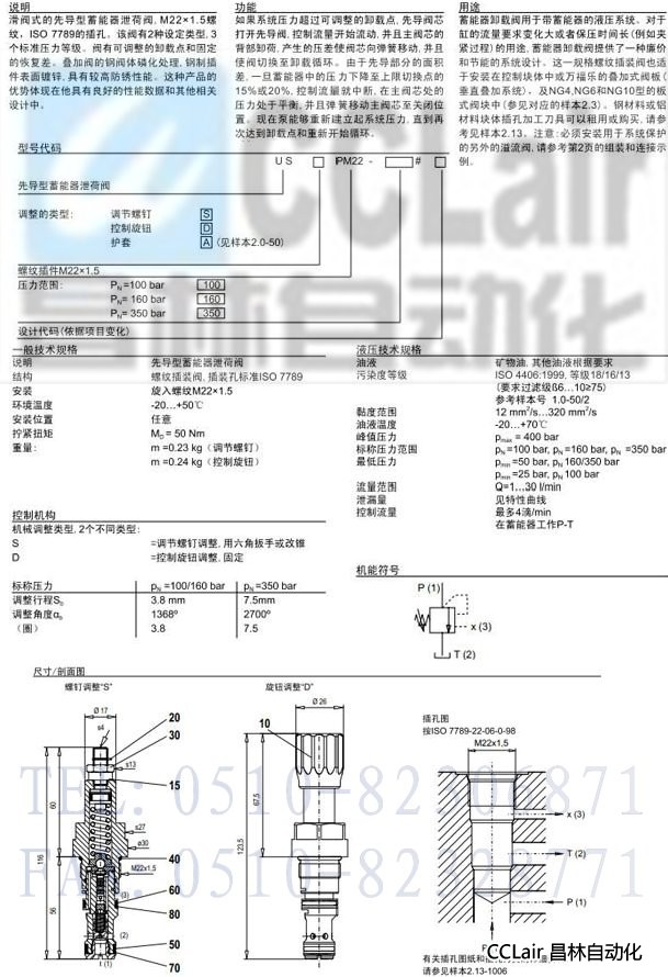 USDPM22-100,USSPM22-160,US.PM22,先導式蓄能器泄荷插裝閥
