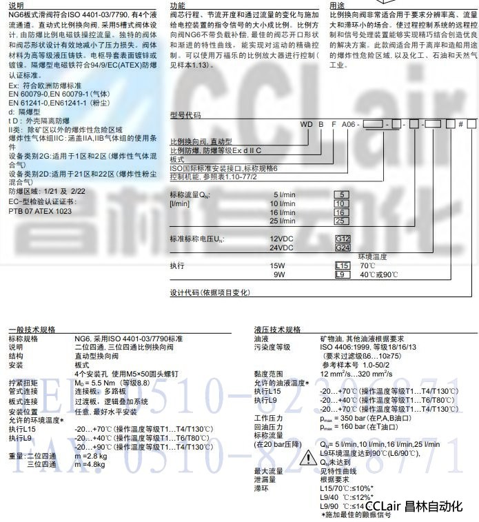 WDBFA06,防爆式比例換向閥 Ex d II C