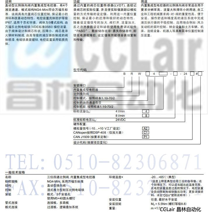 BRW4x4,BRWS4D41,BRWV4D42,比例換向閥 (內(nèi)置集成型電控器和 LVDT)