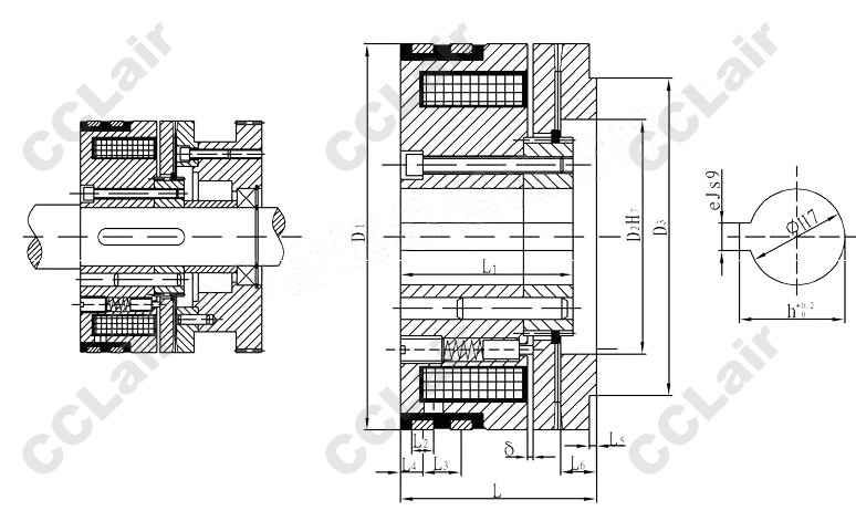 離合器主要由磁軛 ,銜鐵、齒環(huán)和電刷組成,磁軛內(nèi)裝有線圈,線圈引出線分別與兩個(gè)滑環(huán)相焊接,導(dǎo)電是由電刷壓緊滑環(huán)來(lái)完成,磁 與線圈和磁 與滑環(huán)均由絕緣良好的環(huán)氧樹(shù)脂澆注。磁軛體內(nèi)磁極端面上,有多個(gè)均布的彈簧和頂子。齒輪套也與磁 體相聯(lián),帶端面齒的齒環(huán)可與用戶的傳動(dòng)部分相聯(lián)接。