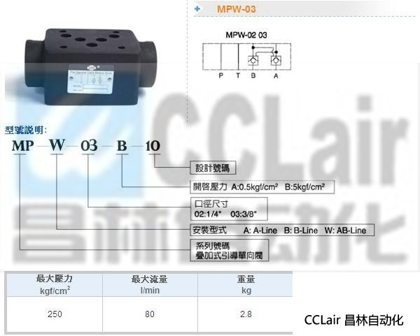 MPW-03-B-10,MPW-03-A-10,疊加式引導(dǎo)單向閥