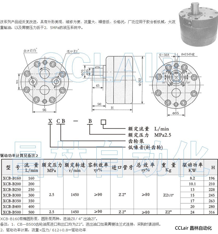 XCB-B160,XCB-B200,XCB-B250,XCB-B300,低壓大流量齒輪油泵