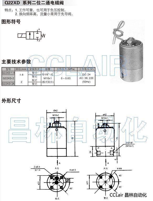 Q22XD-1.6,Q22XD-2,Q22XD-2A,二位二通電磁閥