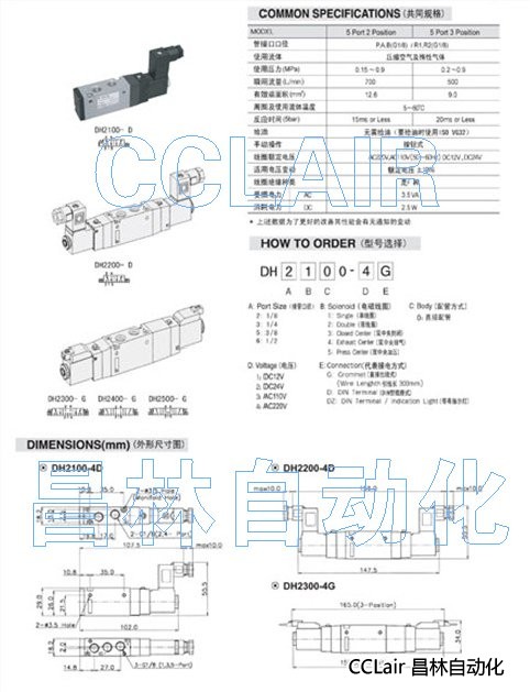 DH2100-2D,DH2200-2D,DH2300-2D,DH2400-2D,DH2500-2D,5通先導型電磁閥