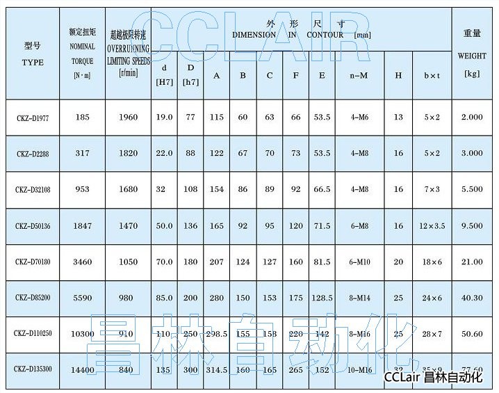 CKZ-D1977,CKZ-D2288,CKZ-D32108,CKZ-D50136,單向離合器