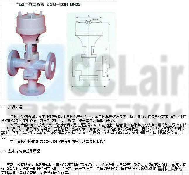 ZSQ-403R-DN25,ZSQ-403R-DN40,ZSQ-402R-DN25,ZSQ-402R-DN40,氣動二位切斷閥