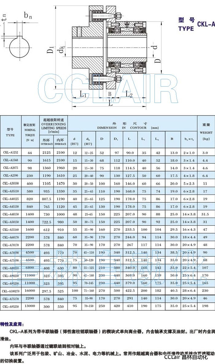 CKL-A1252,CKL-A1568,CKL-A2075,CKL-A2590,CKL-A30100,CKL-A35110,CKL-A40125,超越離合器