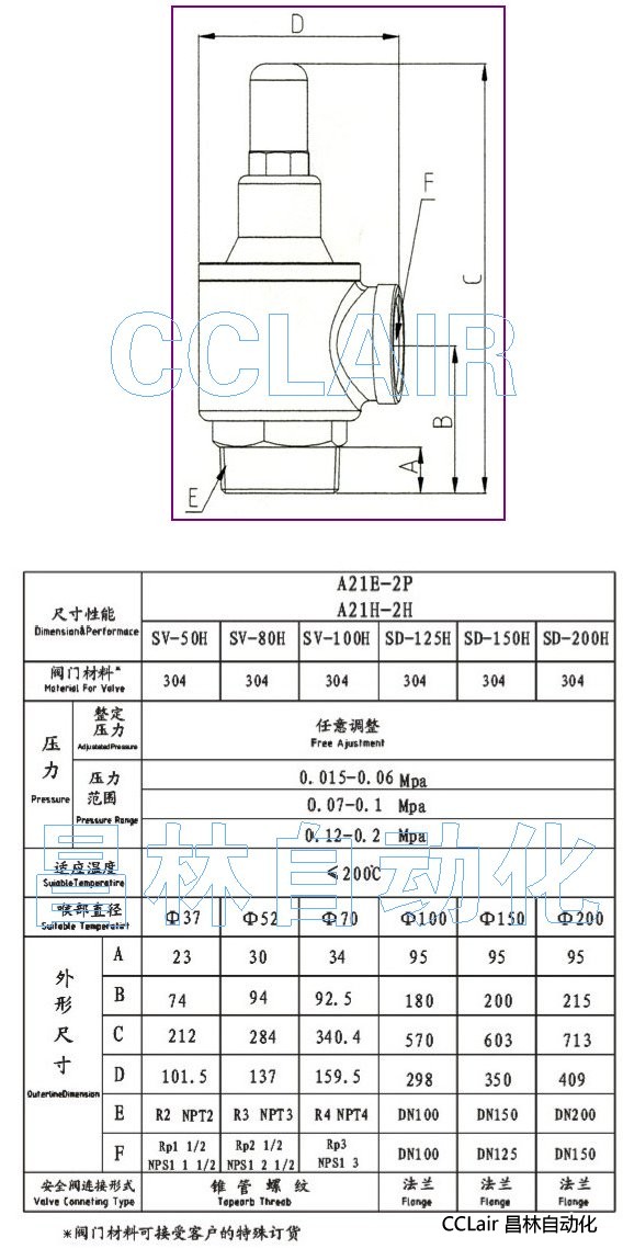 A21E-2P,A21H-2H,SV-50H,SV-80H,SV-100H,SD-125H,SD-150H,SD-200H,回流式泄壓閥