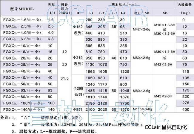 FGXQ1-1.6/20-D,FGXQ1-2.5/20-D,FGXQ2-1.6/20-D,FGXQ2-4/20-D,FGXQ1-6.3/20-D,非隔離式蓄能器