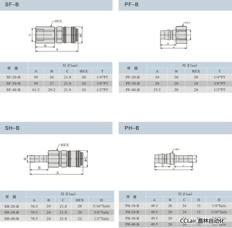 SF-20,SF-30,SF-40,PF-20,PF-30,PF-40,SH-20,SH-30,SH-40,PH-10,PH-20,PH-30,單手操作快換接頭