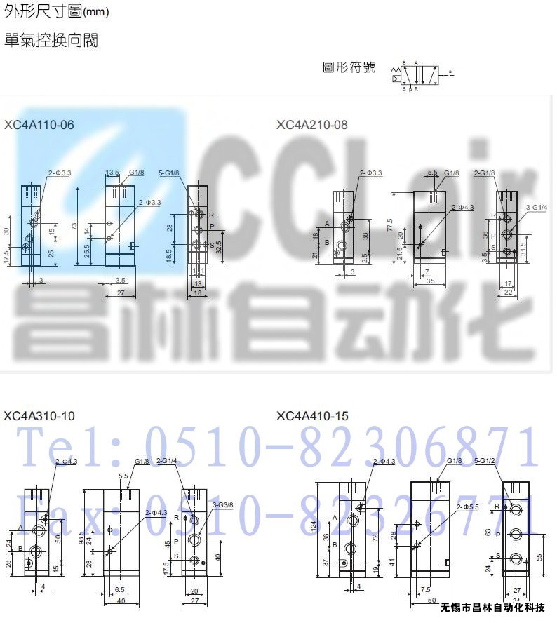 XC4A110-06,XC4A120-06,XC4A210-08,XC4A220-08,XC4A310-10,二位五通氣控?fù)Q向閥