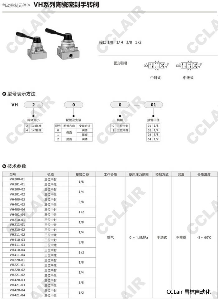 VH200-01,VH201-01,VH200-02,VH201-02,VH400-03,VH401-03,陶瓷密封手控閥