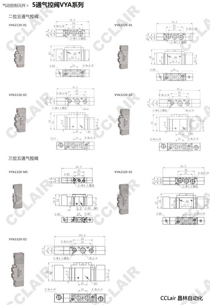 VYA3120-01,VYA3220-01,VYA3320-01,VYA3220-02,VYA3320-02,VYA3120-02,5通氣控閥