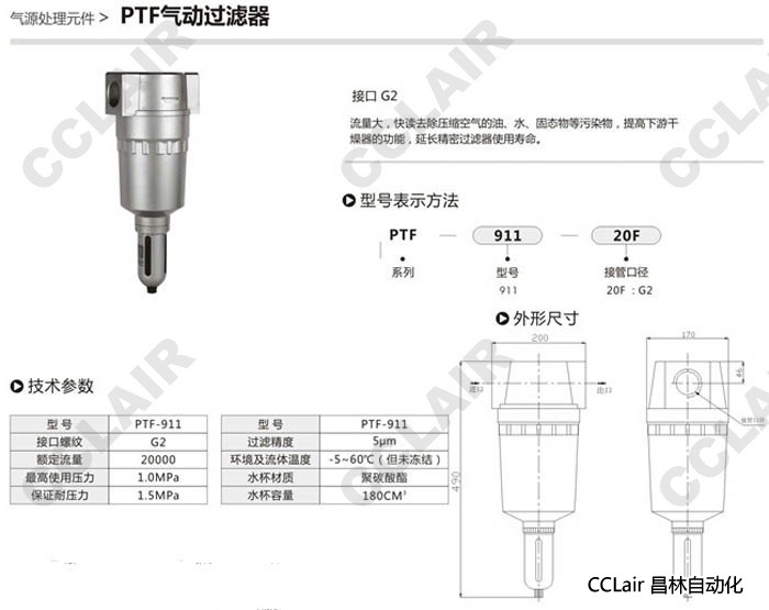 PTF-911-20F,氣動過濾器