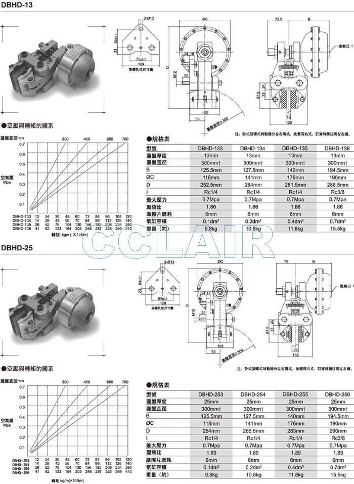 DBHD-255,DBHD-256,DBHD-303,DBHD-304,DBHD-305,DBHD-306空壓碟式制動器 |