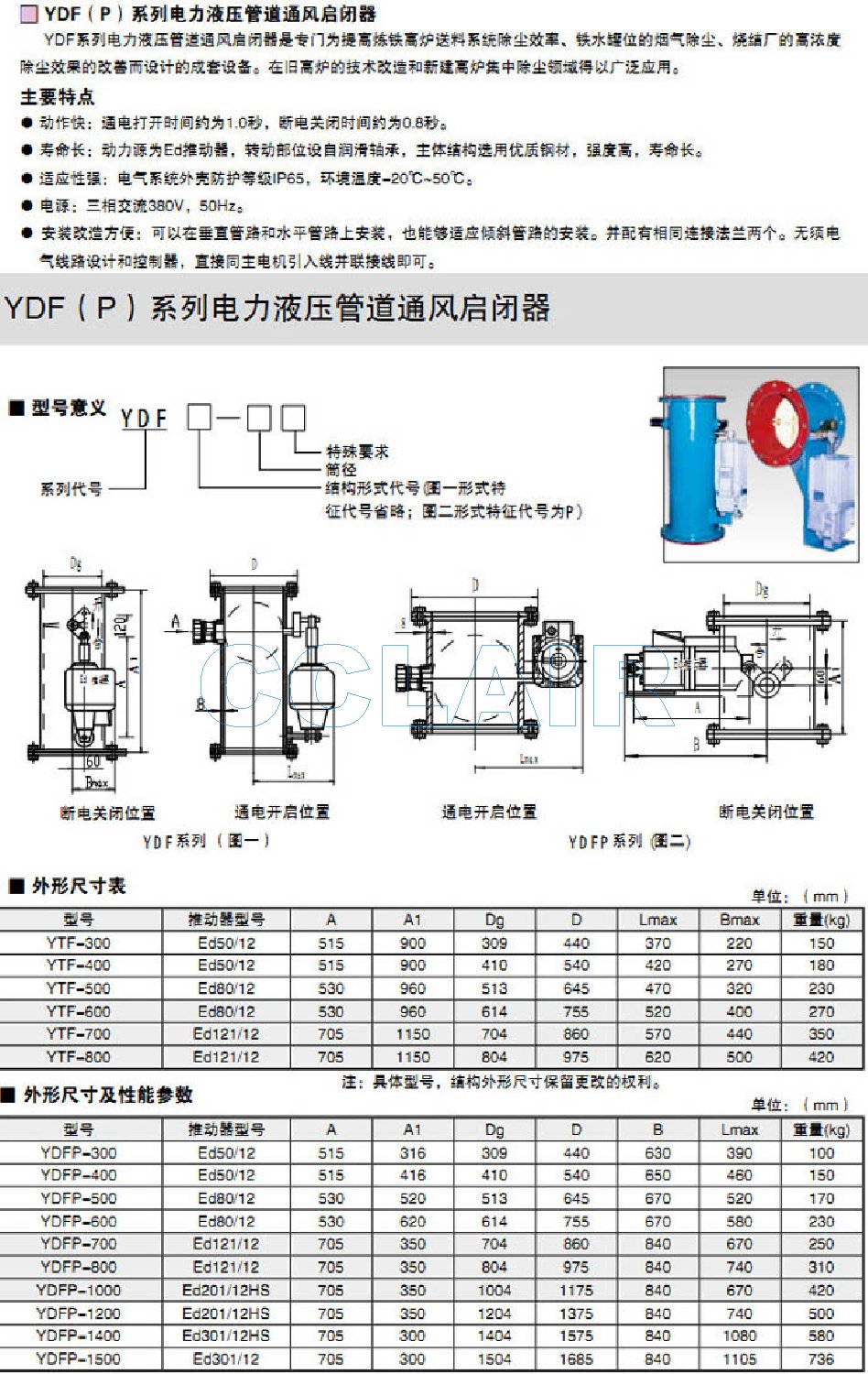 YDFP-300,YDFP-400,YDFP-500,YDFP-600,YDFP-700,電力液壓管道通風(fēng)啟閉器