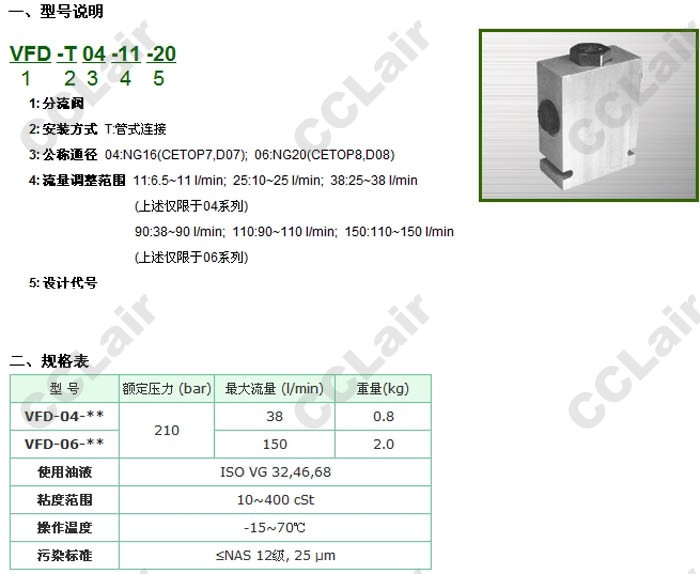 VFD-T04-11-20,VFD-T04-25-20,VFD-T04-38-20,VFD-T06-90-20,VFD-T06-110-20,VFD-T06-150-20,分流閥