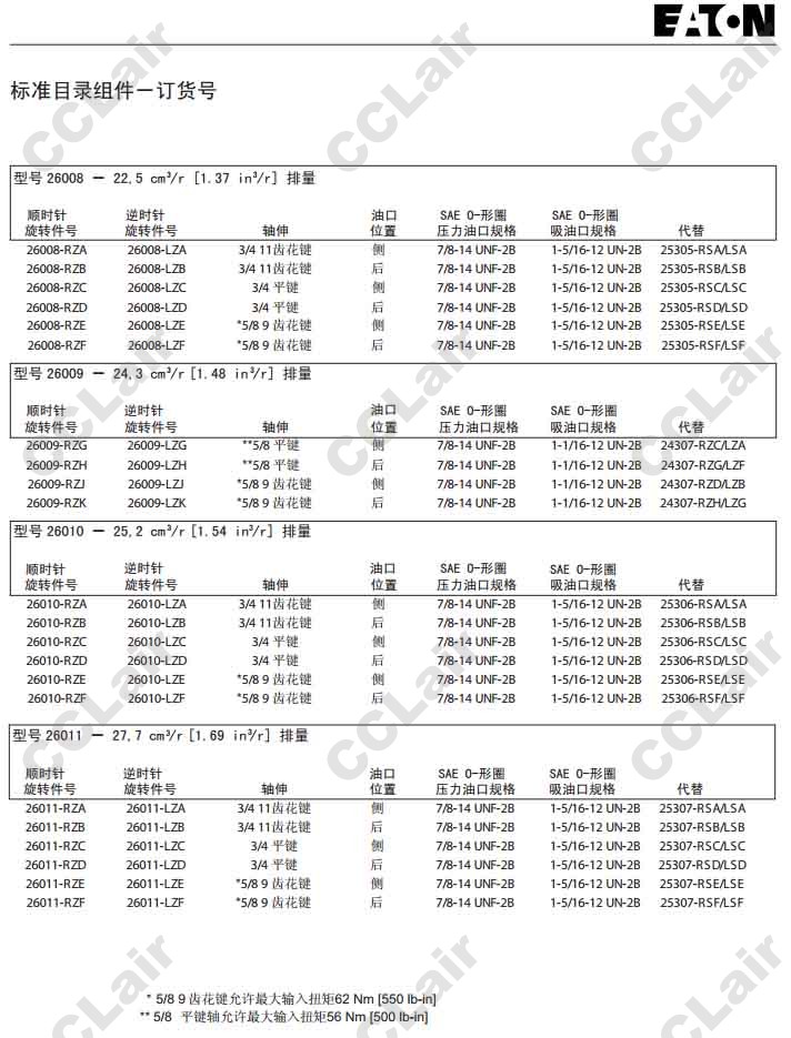 26010-RZE,26010-LZE,26010-RZF,威格士-Vickers26010-LZF,26011-RZA,26011-LZA,26011-RZB,26011-LZB,B